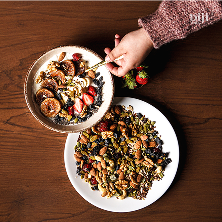A staple in Biji’s morning routine, dried figs are known to be vitality-packed fruits that deserve a place in your daily diet. Naturally high in dietary fibre and packed with essential antioxidants vitamins and minerals, figs promote digestive, heart and bone health, regulate blood pressure and reduce inflammation.