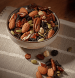 A wholesome blend of roasted almonds, pecan nuts and hazelnuts, roasted pumpkin seeds, seedless black raisins, and dried sliced cranberries—this mix is nutritious and downright delicious.